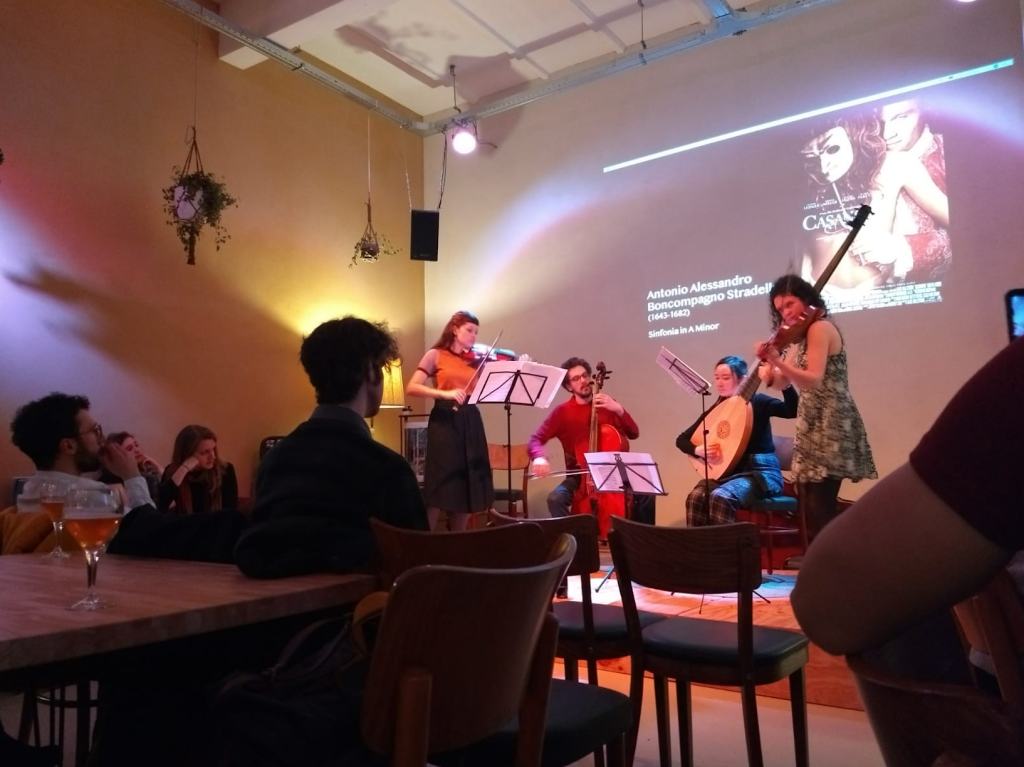 “Cards, Chords and Cocktails”: Festive card making concert featuring Baroque chamber music at Grand Cafe Utopie, The Hague (November 2021)